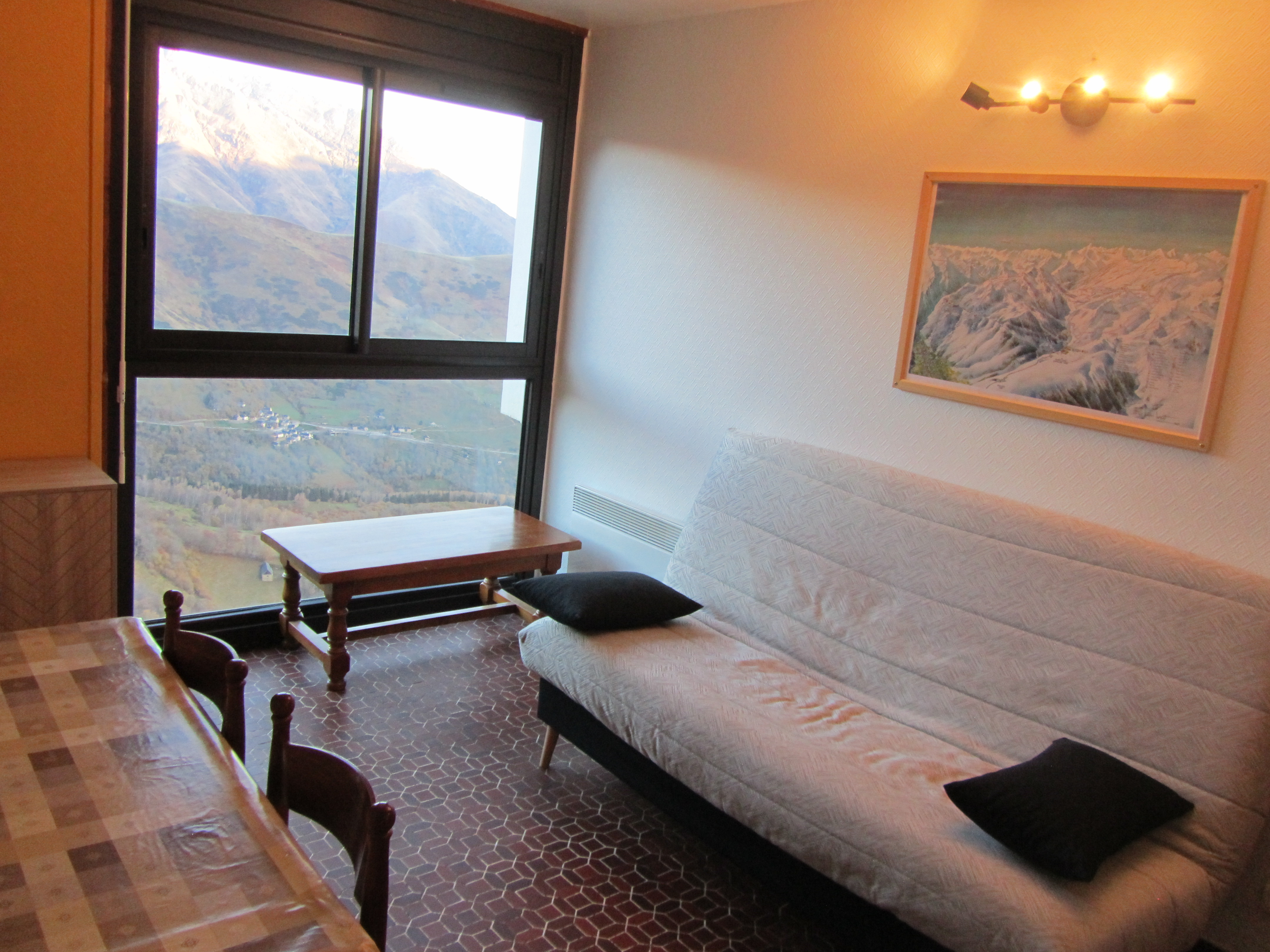 Situé au ré de chaussée porte E de la résidence, au pied des pistes à Pla d'Adet 1700, ce studio comprend : un coin kitchenette, 2 lits superposés , 1 clic clac convertible (2 couchages), 1 salle de bain (lavabo, baignoire) + wc. Dans l'entrée, un placard à chaussure et bagages. Un double placard à ski se trouvant à l'étage - 1 de la même porte. Réservations et renseignements par téléphone (portable de préférence).Logement non fumeur et interdit aux animaux de compagnies.