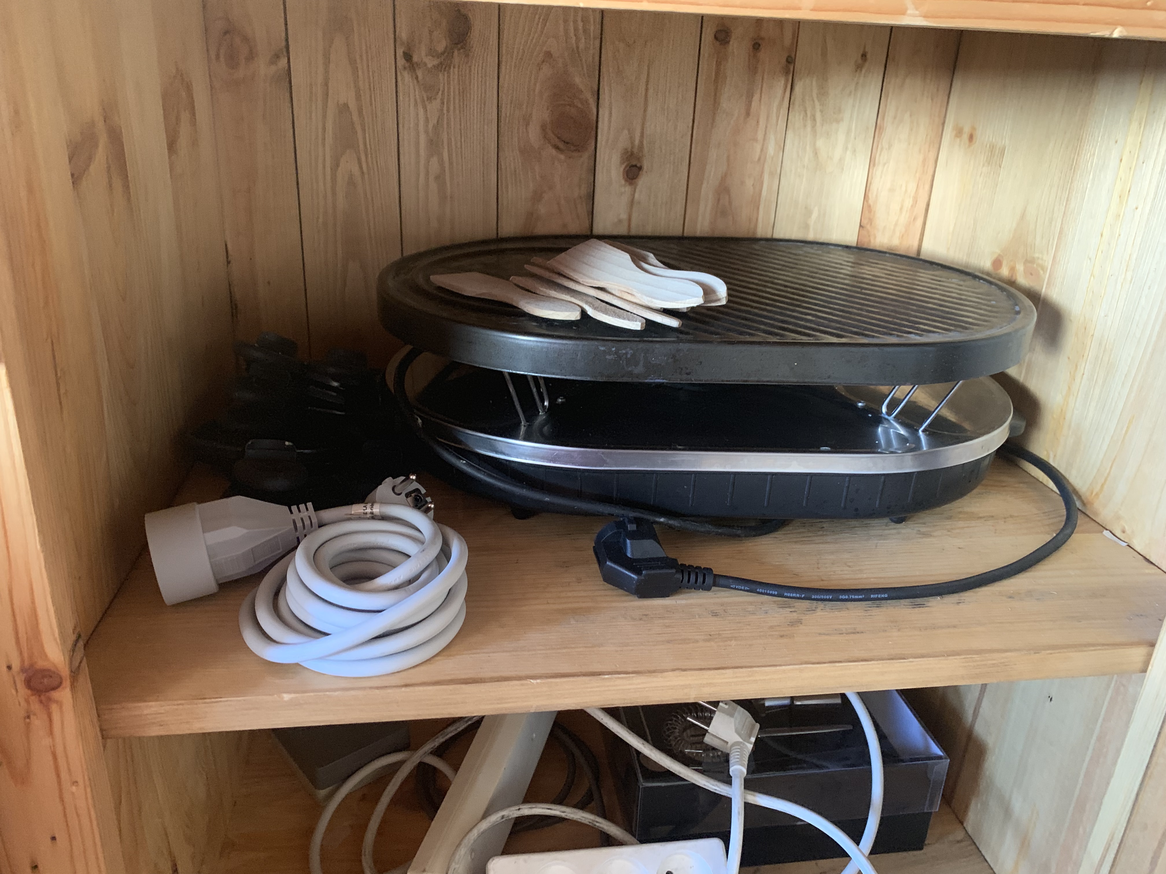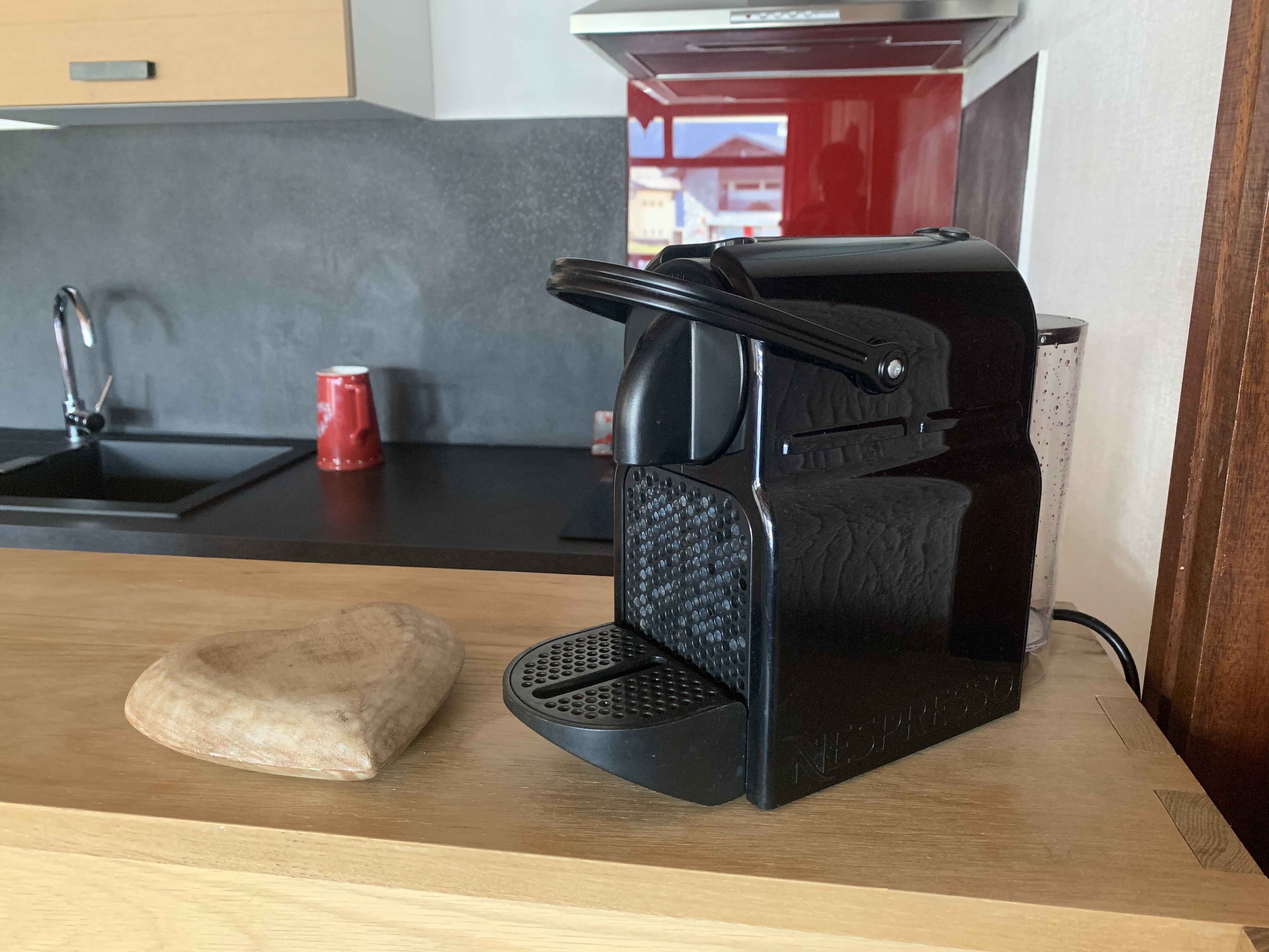 · Cuisine équipée avec bar, micro-ondes grill, plaque à induction 3 feux, hotte, grand réfrigérateur avec compartiment congélateur, lave-vaisselle, appareil à raclette, grille-pain, bouilloire, cafetières (1 filtre et 1 Nespresso), rangements