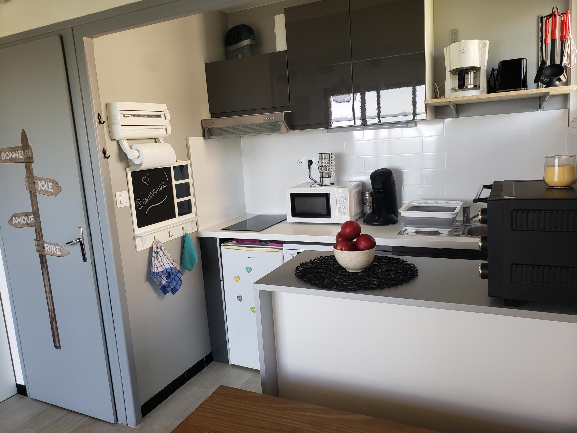 Cocon de 24m2 refait à neuf dans une petite résidence tranquille.Il est composé d'une pièce à vivre équipée d'un BZ 2 couchages (+1 couchage d'appoint supplémentaire à disposition dans le cellier si besoin) grande télé dans le séjour, cuisine équipée (avec lave-vaisselle).