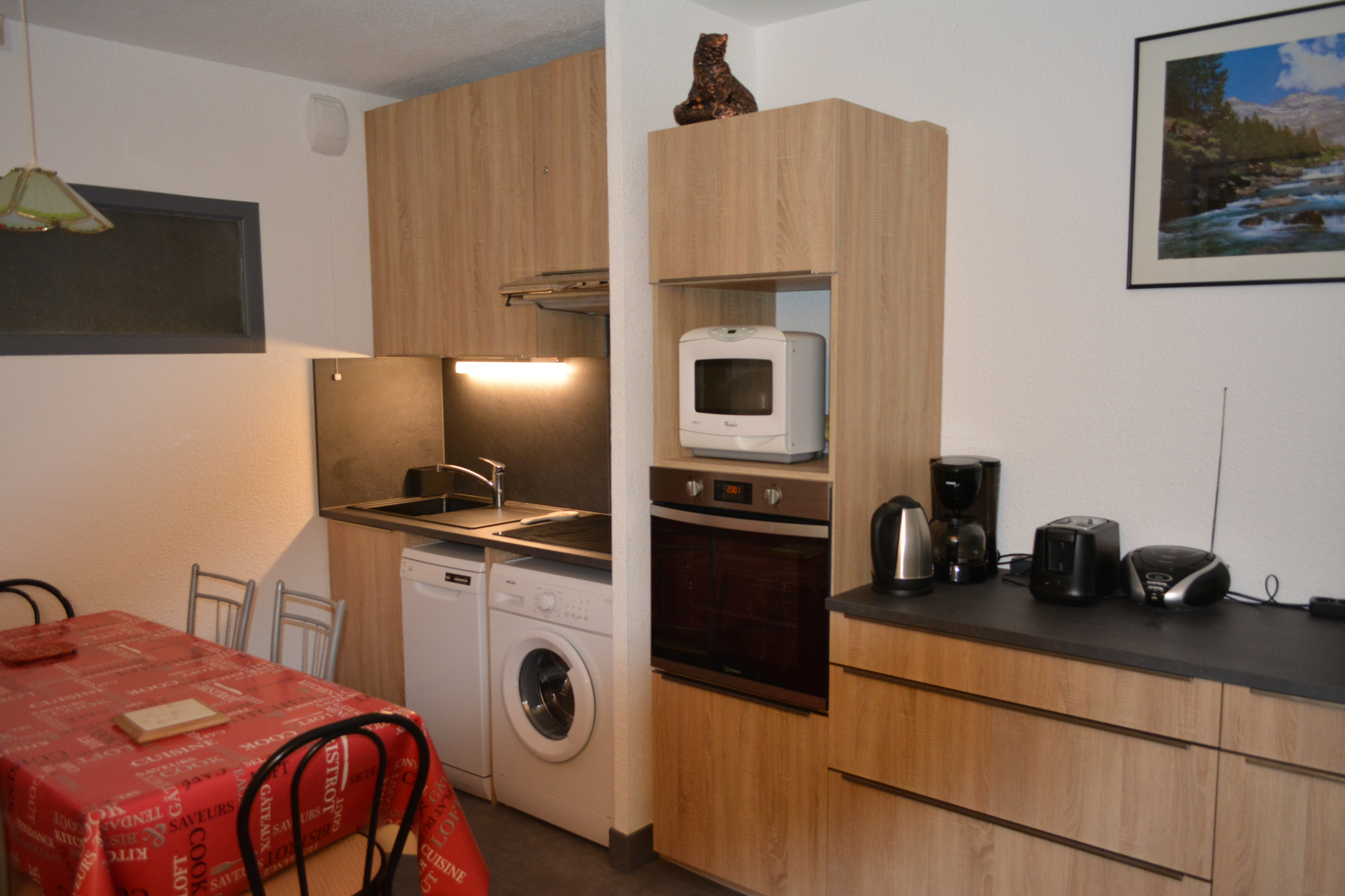 Dans le séjour : réfrigérateur avec partie congélateur - plaque vitrocéramique 4 feux - lave-vaisselle - lave-linge- four - four micro-onde - bouilloire - cafetière - grille-pain - téléviseur écran plat + démodulateur TNT - lecteur DVD - lecteur radio/CD - gaufrier/croque-monsieur - appareils raclette/pierrade/crèpière - plancha grill - vaisselle pour 6 personnes