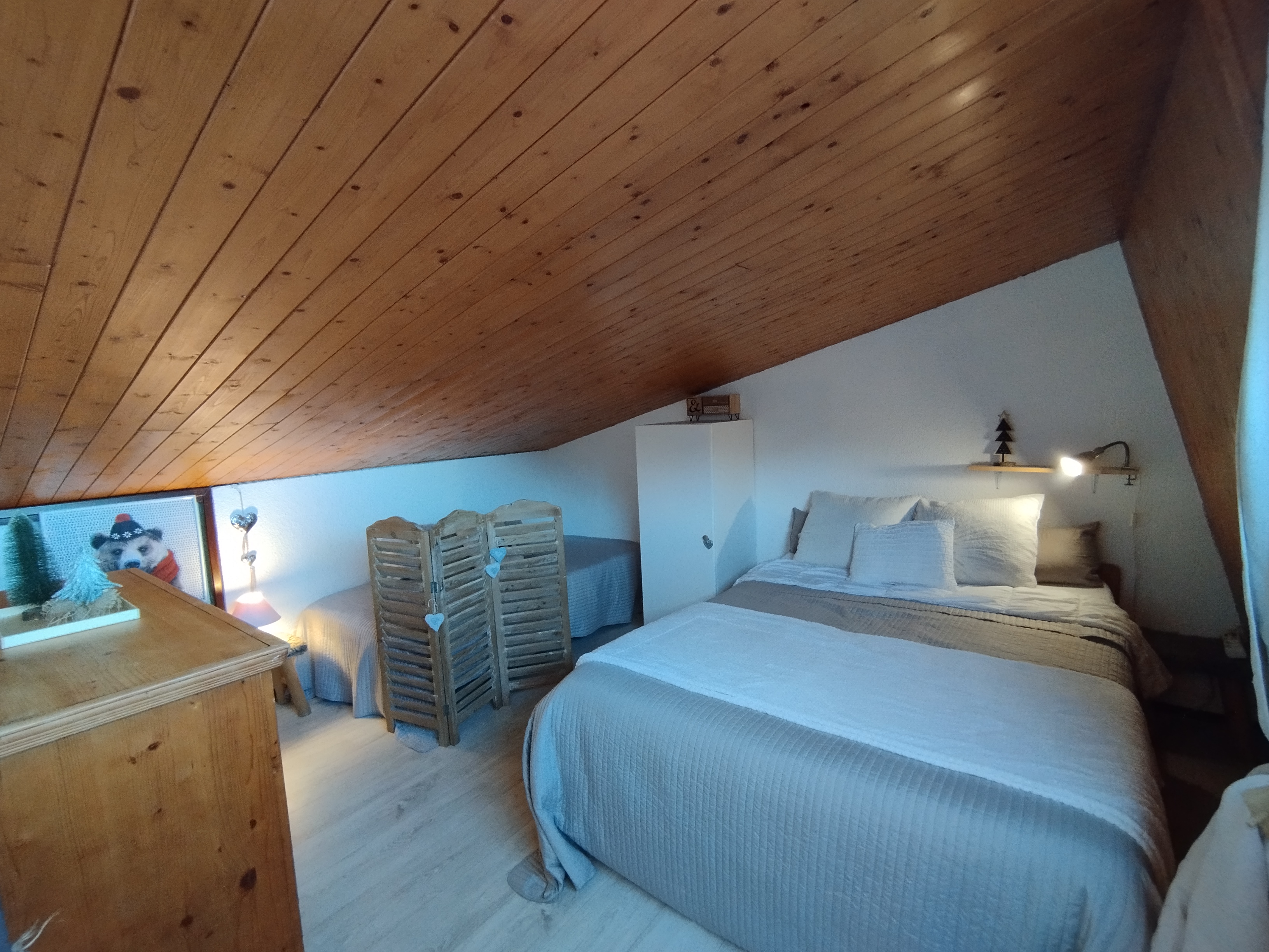 1 chambre mansardée avec 1 lit de 140 cm et 1 lit de 90 cm