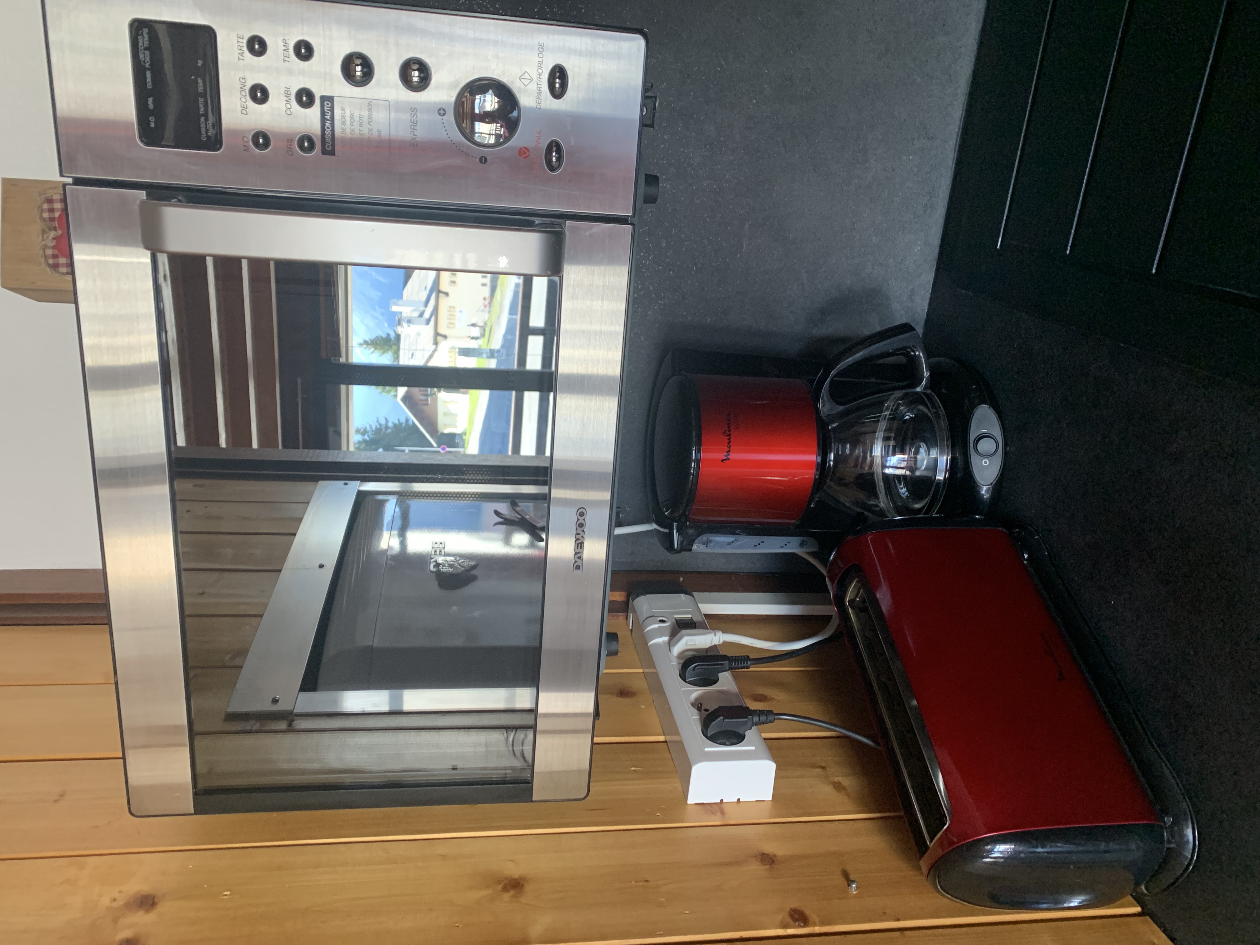 · Cuisine équipée avec bar, micro-ondes grill, plaque à induction 3 feux, hotte, grand réfrigérateur avec compartiment congélateur, lave-vaisselle, appareil à raclette, grille-pain, bouilloire, cafetières (1 filtre et 1 Nespresso), rangements
