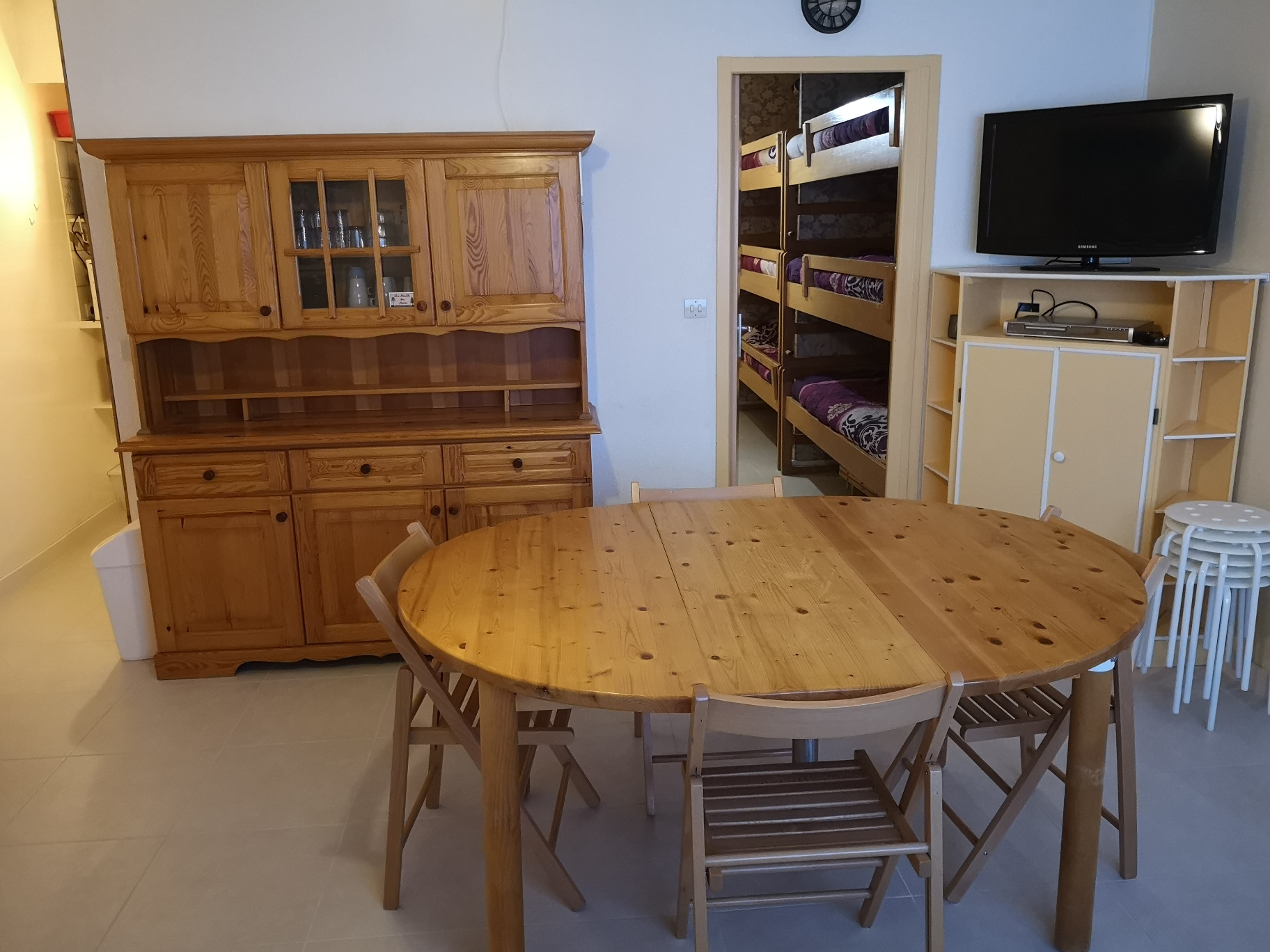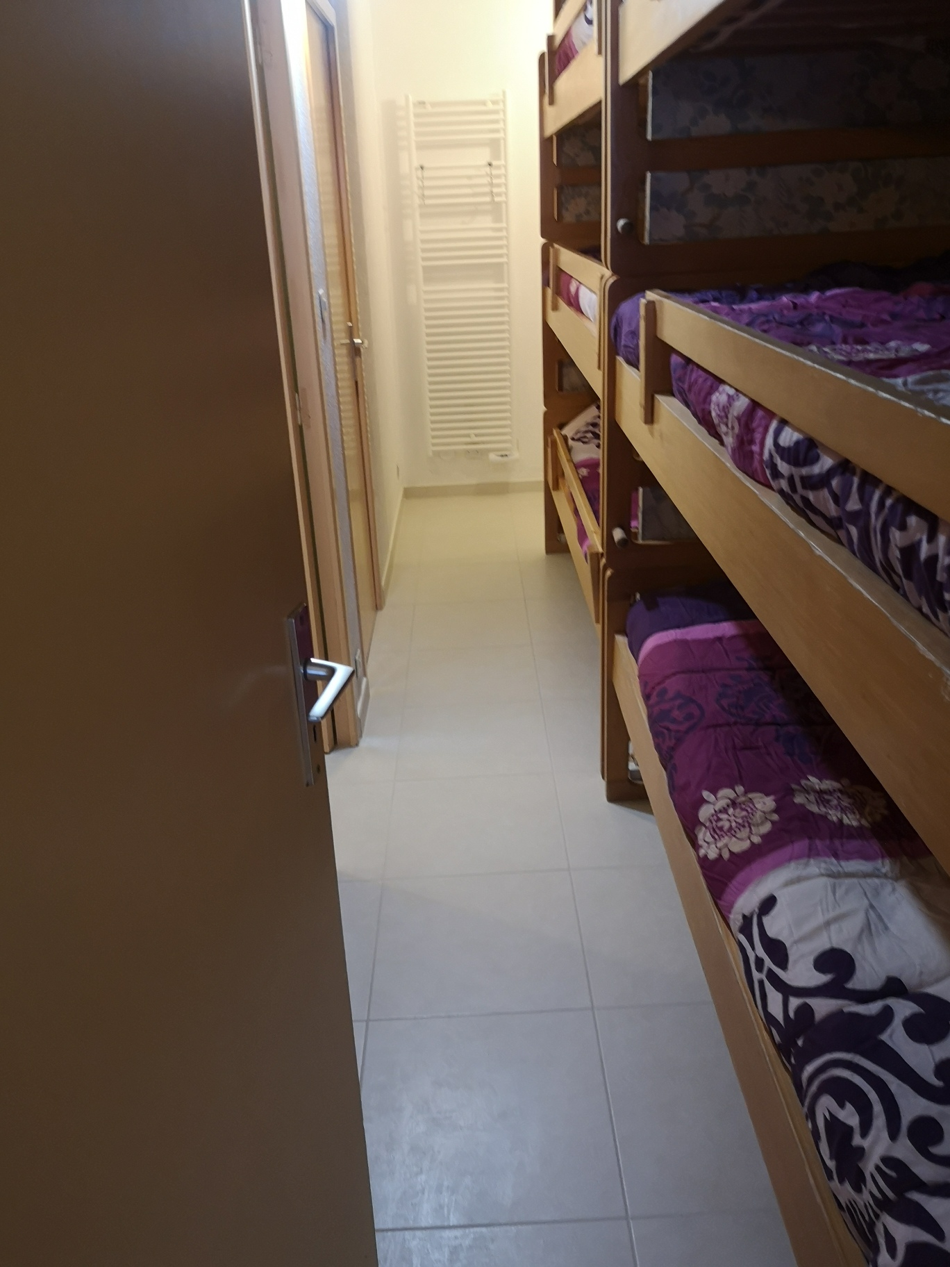 Il est orienté côté sud, 1 chambre avec 1 lit double, 2 fois 3 lits superposés dans le couloir, 1 clic-clac dans la pièce à vivre si besoin de le transformer en lit.