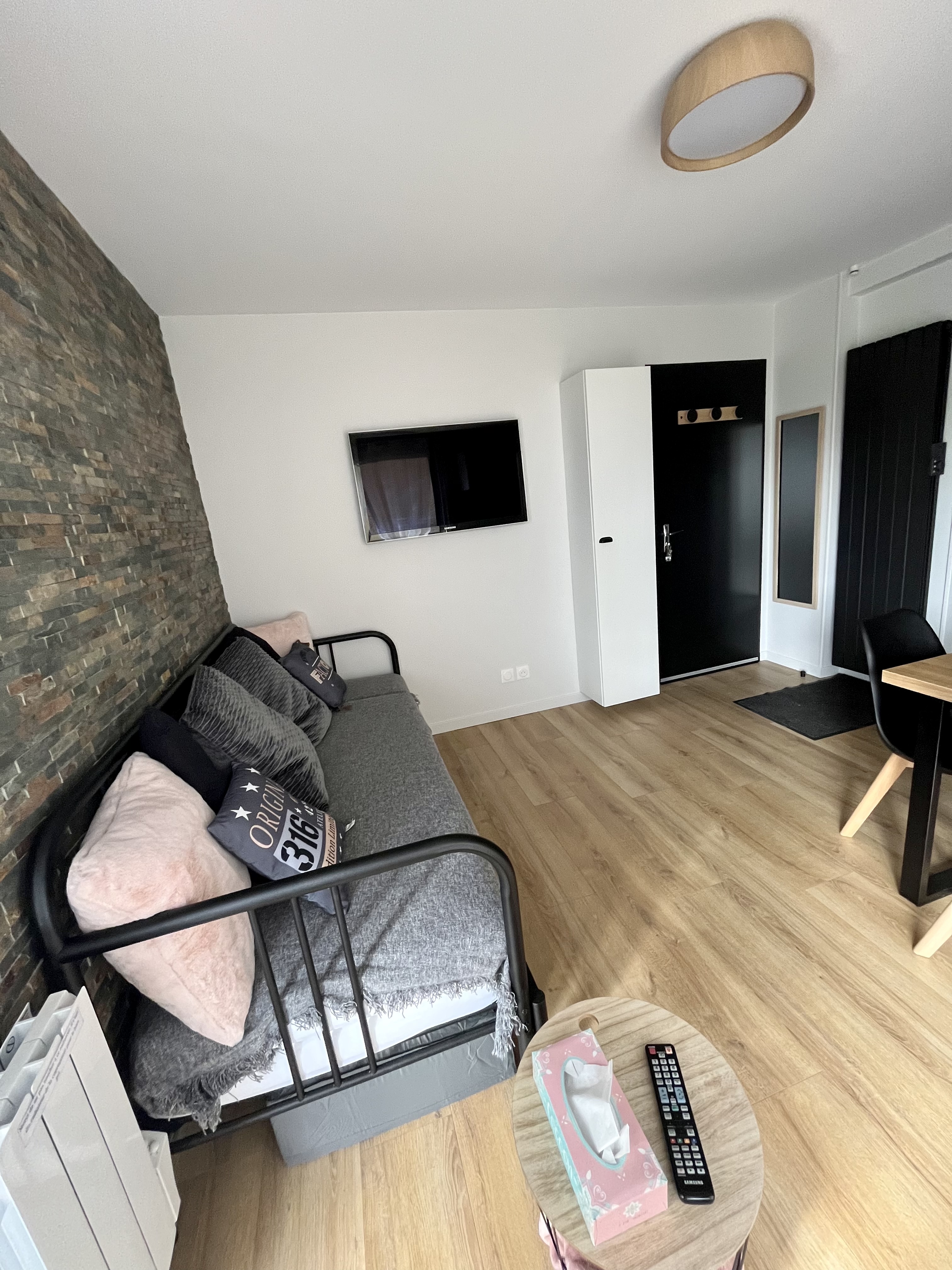Un coin repas avec télévision 102cm avec les chaîne de la TNT.