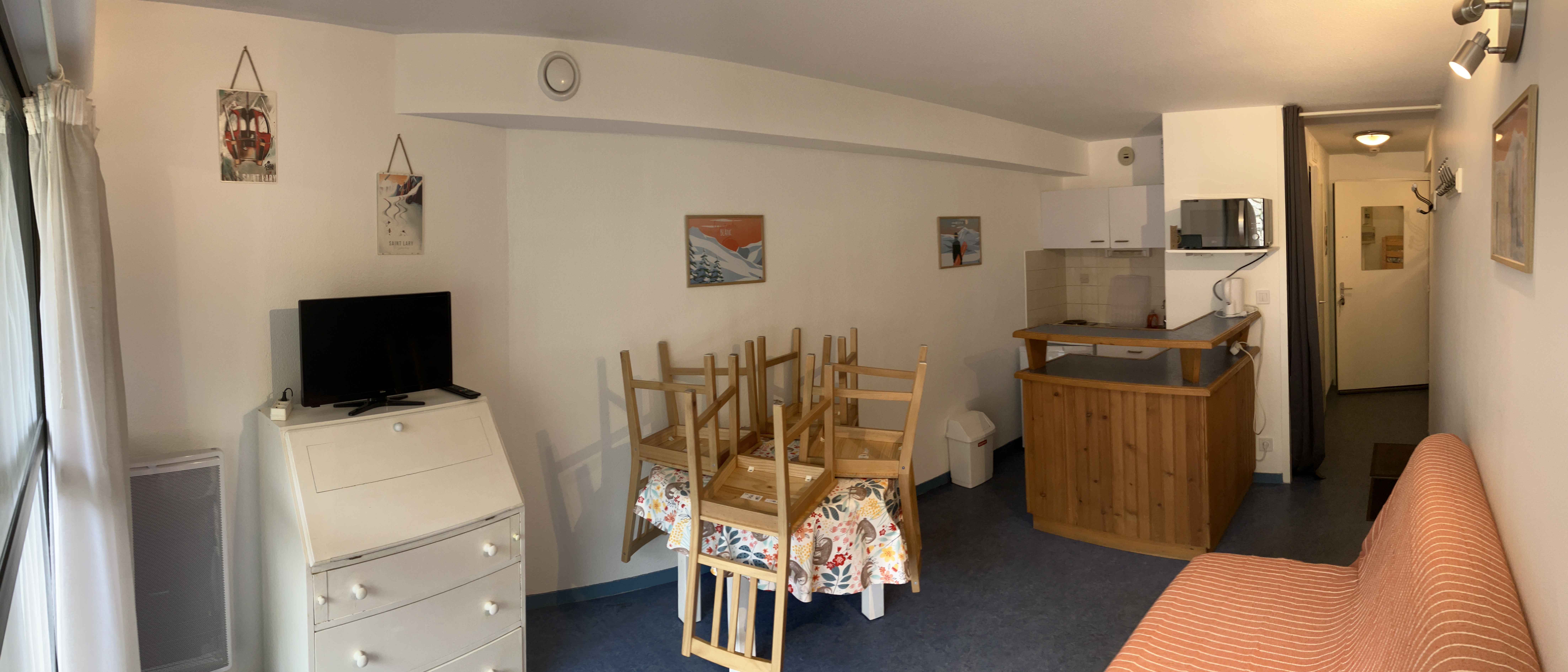 - 2 lits superposé (80x190) dans alcôve + un canapé convertible (140x190), les literies sont munies de protèges matelas, couettes, couvertures, oreillers. ( Les draps, serviettes, torchons et sortie de bains ne sont pas fournis )